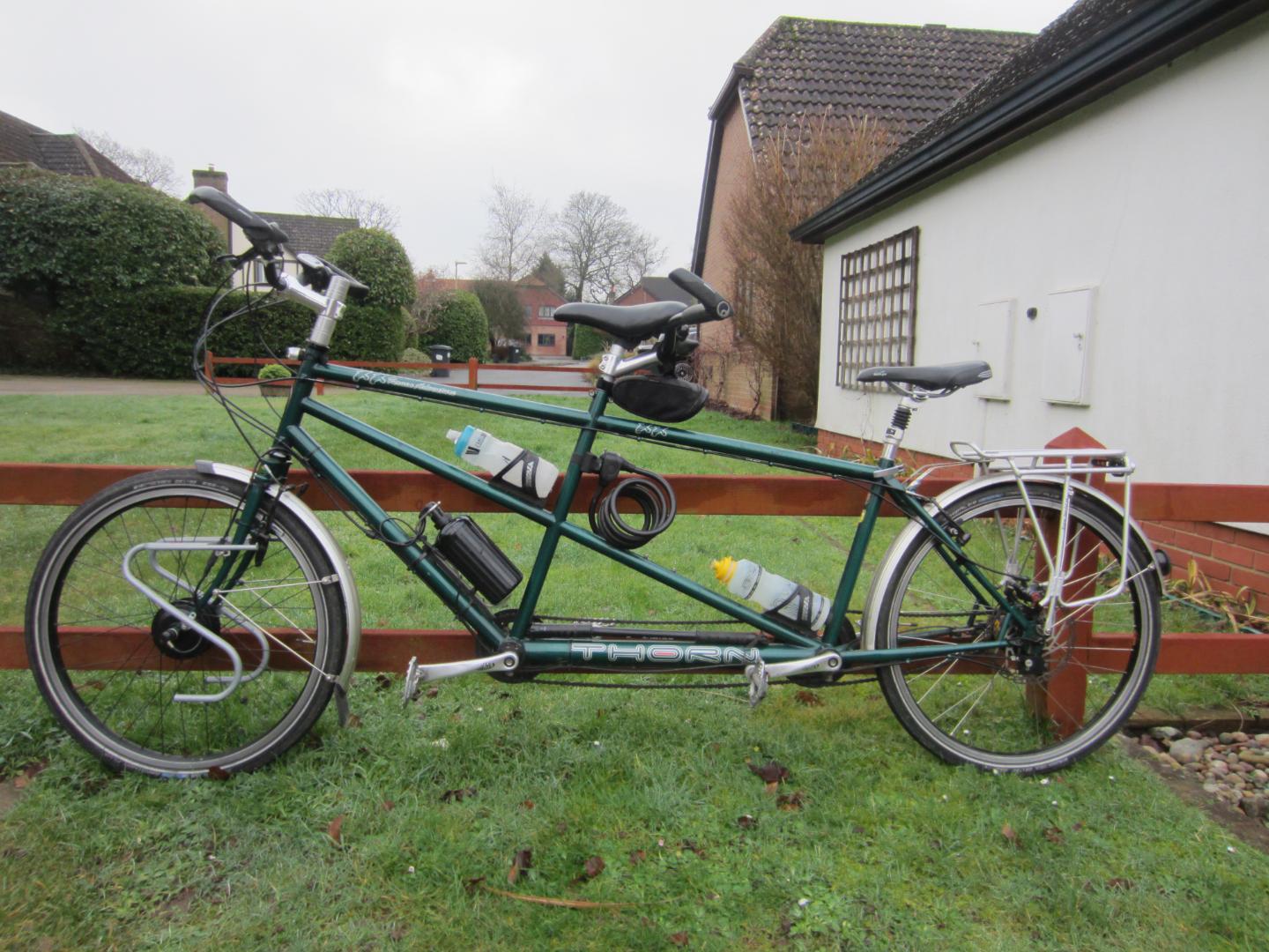 By: Trevor Nichols/br>Id: 1611/br>Email: trevornichols@ascomnet.co.uk/br>Telephone: 01730260931/br>Location: Petersfield/br>Listing ends on: Friday 29th May 2026/br>Price: £1000/br>One owner from new but advancing age reluctantly forces sale. All original build paperwork available. Rohloff 14 speed hub gear with 3rd Hope rear brake fitted. Cytronex front wheel electric drive system (original front wheel retained). Front and rear pannier racks fitted. Tyres - 26in X 1.5 in Schwalbe Marathon Plus all good. This tandem has been well maintained and is ready for serious touring.